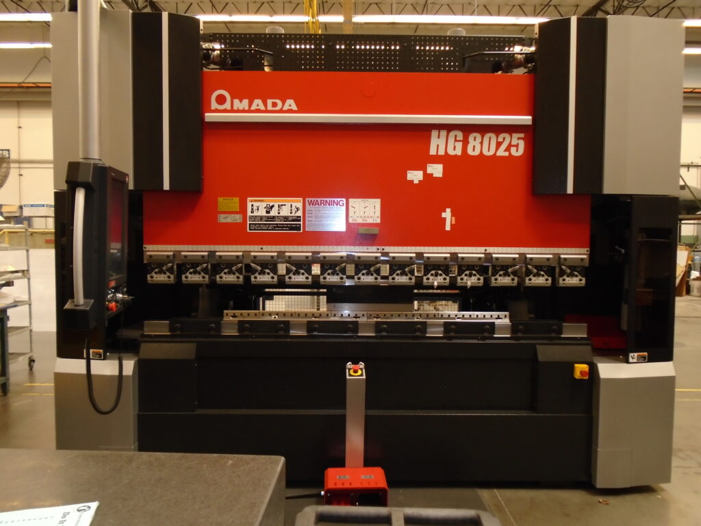 One Amada can handle bends up to 55 tons. The other Amada press brake can handle a full range of applications in bend lengths up to 120 inches.